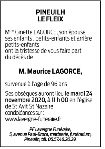 Décédé à Pineuilh (33220, France) le jeudi 19 novembre 2020 à l'âge de 96 ans