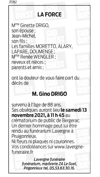 Décédé à Bergerac (24100, France) le lundi 8 novembre 2021 à l'âge de 88 ans