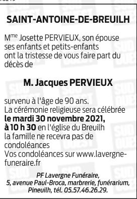 Décédé à Saint-Antoine-de-Breuilh (24230, France) le jeudi 25 novembre 2021 à l'âge de 90 ans