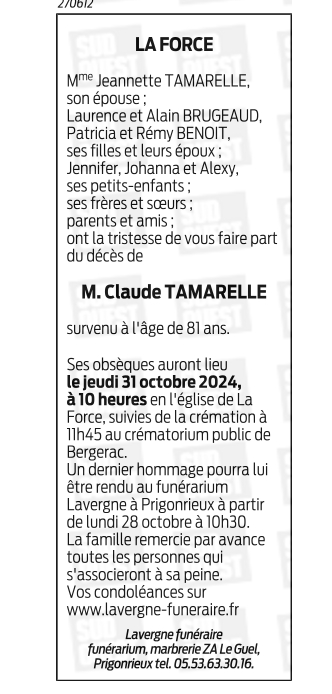 Décédé à Bergerac (24100, France) le vendredi 25 octobre 2024 à l'âge de 81 ans