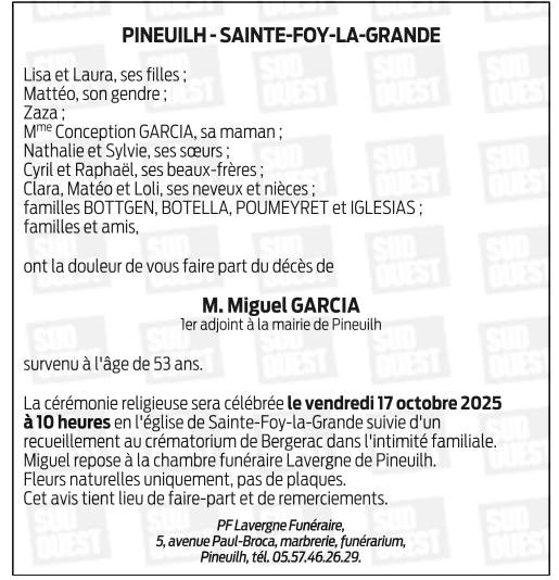 Décédé à Libourne (33500, France) le dimanche 12 octobre 2025 à l'âge de 53 ans