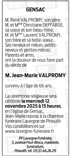 Décédé à Port-Sainte-Foy-et-Ponchapt (33220, France) le dimanche 2 novembre 2025 à l'âge de 66 ans