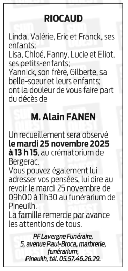 Décédé à Sainte-Foy-la-Grande (33220, France) le mercredi 19 novembre 2025 à l'âge de 78 ans