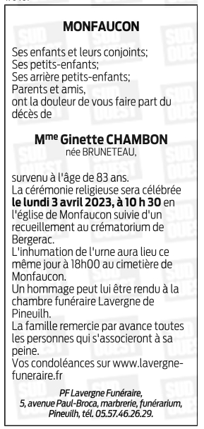 Veuve de Monsieur André CHAMBON