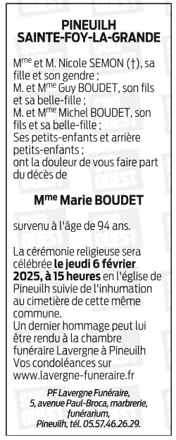 Veuve de Monsieur Francis BOUDET