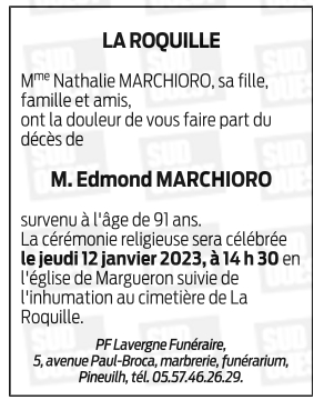 Décédé à Monsegur (33580, France) le dimanche 8 janvier 2023 à l'âge de 91 ans
