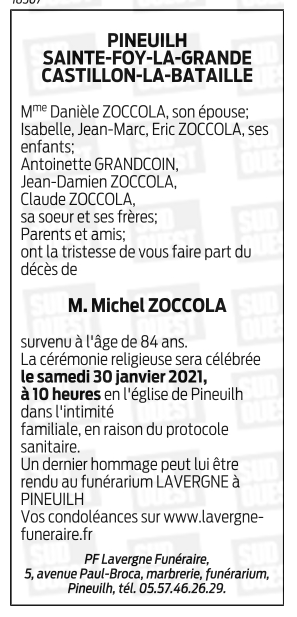 Décédé à Pineuilh (33220, France) le mardi 26 janvier 2021 à l'âge de 84 ans