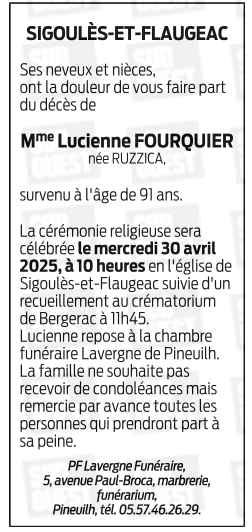 Madame Lucia FOURQUIER née RUZZICA