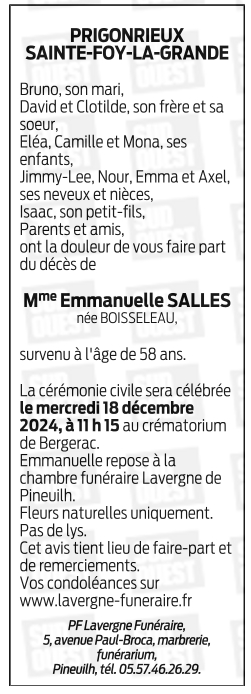 Madame Emmanuelle SALLES née BOISSELEAU