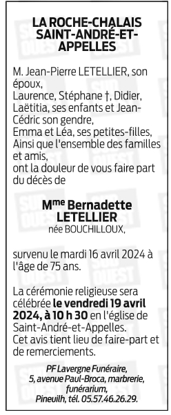 Madame Bernadette LETELLIER née BOUCHILLOUX