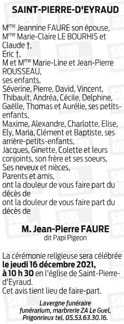 Décédé à Bergerac (24100, France) le dimanche 12 décembre 2021 à l'âge de 82 ans