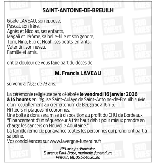 Décédé à Bordeaux (33000, France) le dimanche 11 janvier 2026 à l'âge de 73 ans