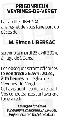 Décédé à Bergerac (24100, France) le mardi 23 avril 2024 à l'âge de 90 ans