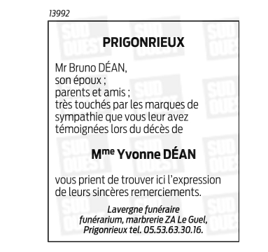Madame Yvonne DÉAN née LAVERGNE
