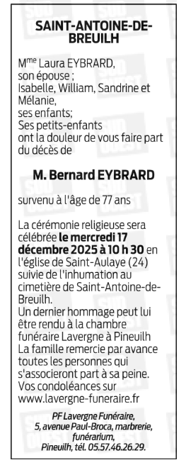 Décédé à Libourne (33500, France) le samedi 13 décembre 2025 à l'âge de 77 ans