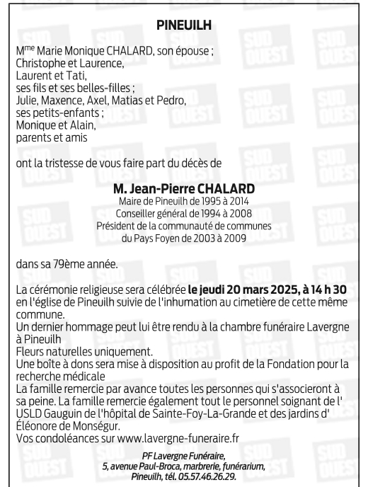 Décédé à Sainte-Foy-la-Grande (33220, France) le jeudi 13 mars 2025 à l'âge de 78 ans