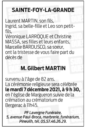 Décédé à Pessac (33600, France) le mercredi 1 décembre 2021 à l'âge de 82 ans