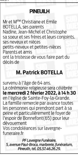 Décédé à Bonnefont (65220, France) le jeudi 27 janvier 2022 à l'âge de 64 ans
