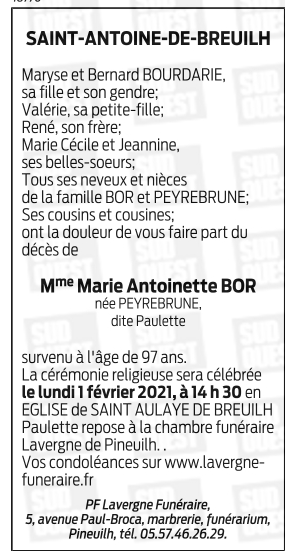 Madame Marie-Antoinette BOR née PEYREBRUNE