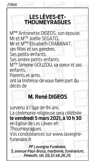 Décédé à Libourne (33500, France) le dimanche 28 février 2021 à l'âge de 94 ans
