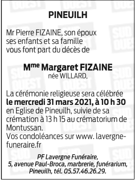 Epouse de Monsieur Pierre Marie Georges FIZAINE