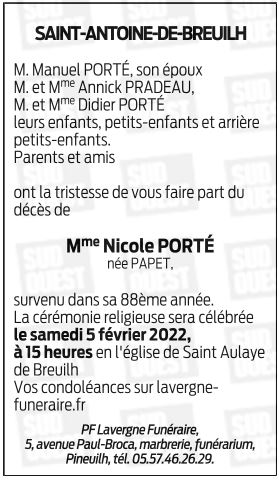 Epouse de Monsieur Manuel PORTÉ