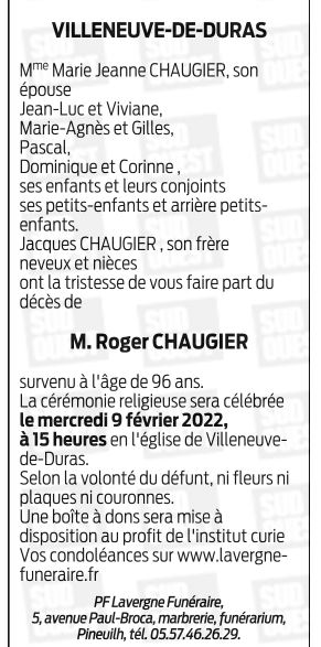 Décédé à Libourne (33500, France) le jeudi 3 février 2022 à l'âge de 96 ans