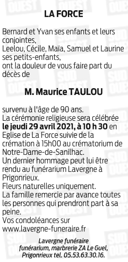 Décédé à Bergerac (24100, France) le dimanche 25 avril 2021 à l'âge de 90 ans