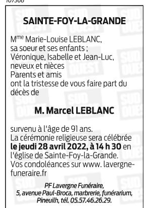 Décédé à Mérignac (33700, France) le dimanche 24 avril 2022 à l'âge de 91 ans