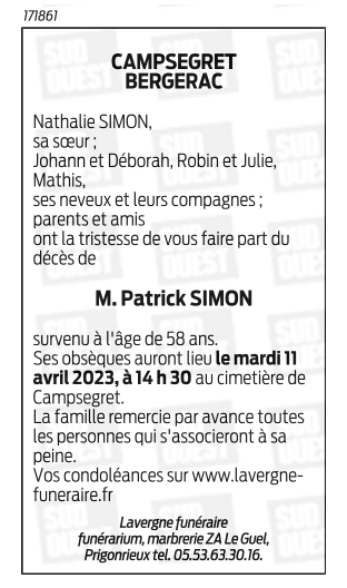 Décédé à Bergerac (24100, France) le mercredi 5 avril 2023 à l'âge de 58 ans